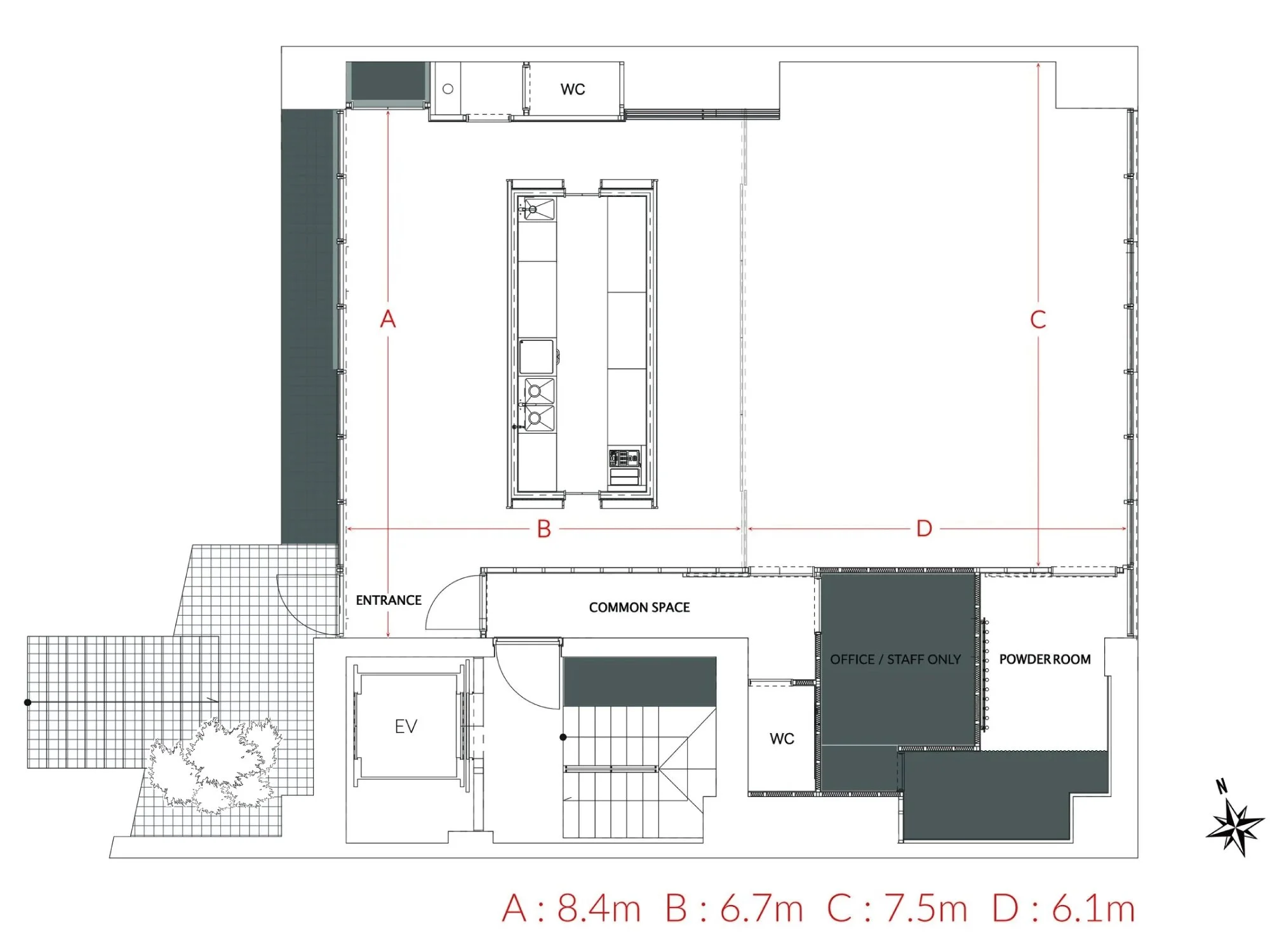 By using the large island type kitchen counter, you can hold events where catering services are required, presentations of new collections, workshops, etc.